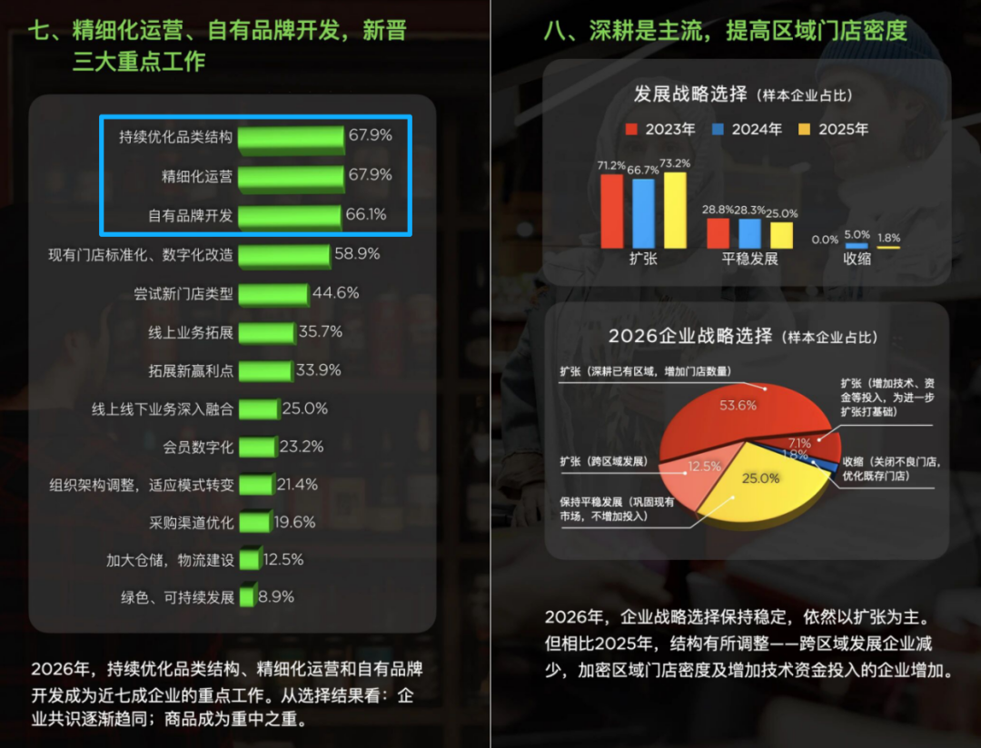 根据中国连锁经营协会调查显示,企业对2026年的三大工作重点高度集中: