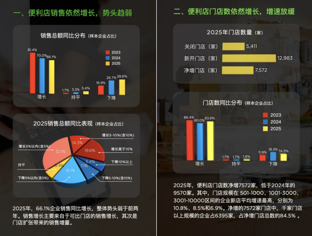 根据中国连锁经营协会对56家便利店企业、15.9万家门店的摸底调查显示,2025年66.1%的企业销售同比增长,门店净增7572家,超过半数企业利润维持成长或持平。从数字上看,便利店依然是一个具备极强韧性的行业。
