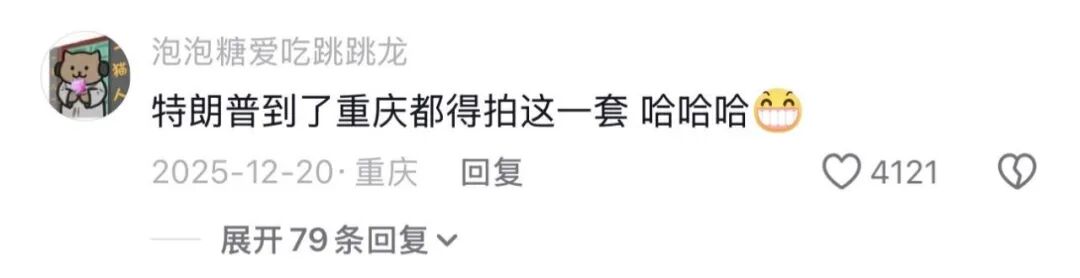特朗普来了重庆,也得整完这一套流水线再走:张开手、抱飞,机车上耍帅,BGM再怼上一段汪苏泷版的《爱丫爱丫》。