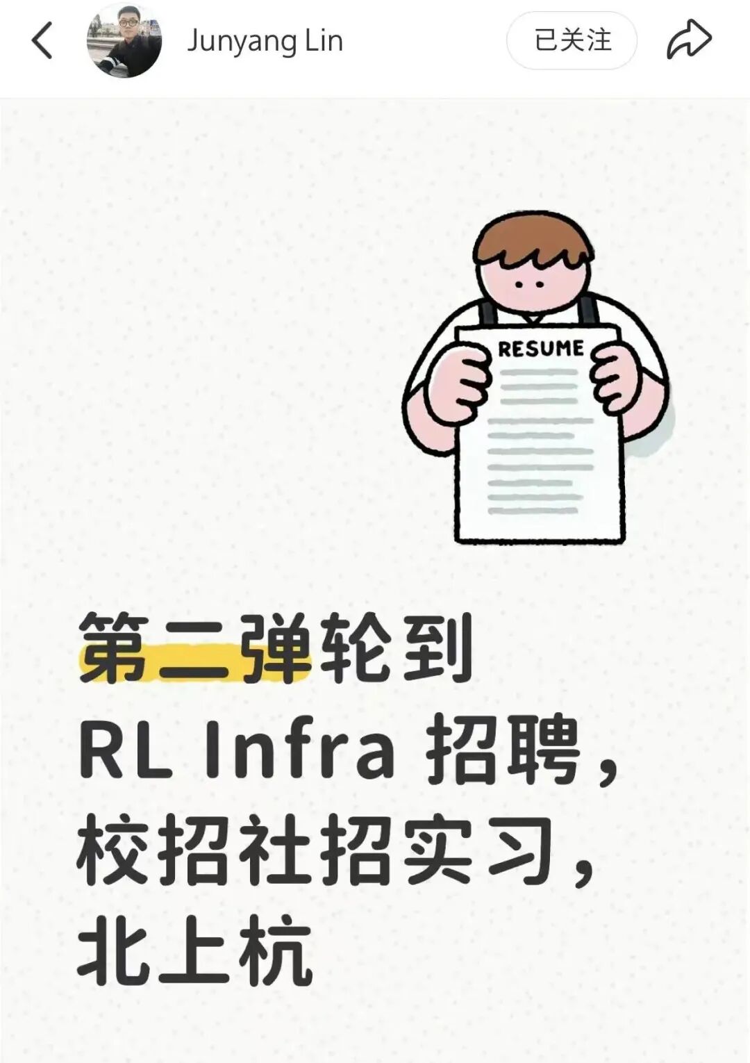 林俊旸在社交媒体上招RL Infra岗位人员
