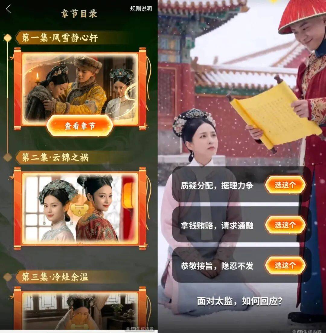 如果说《公主请自重》测试的是技术成熟度与核心用户接受度,那么《马上来财》验证的是泛用户的参与热情与传播效率。通过内容的差异化布局,长视频平台已然开始了AI互动剧的谨慎探索。