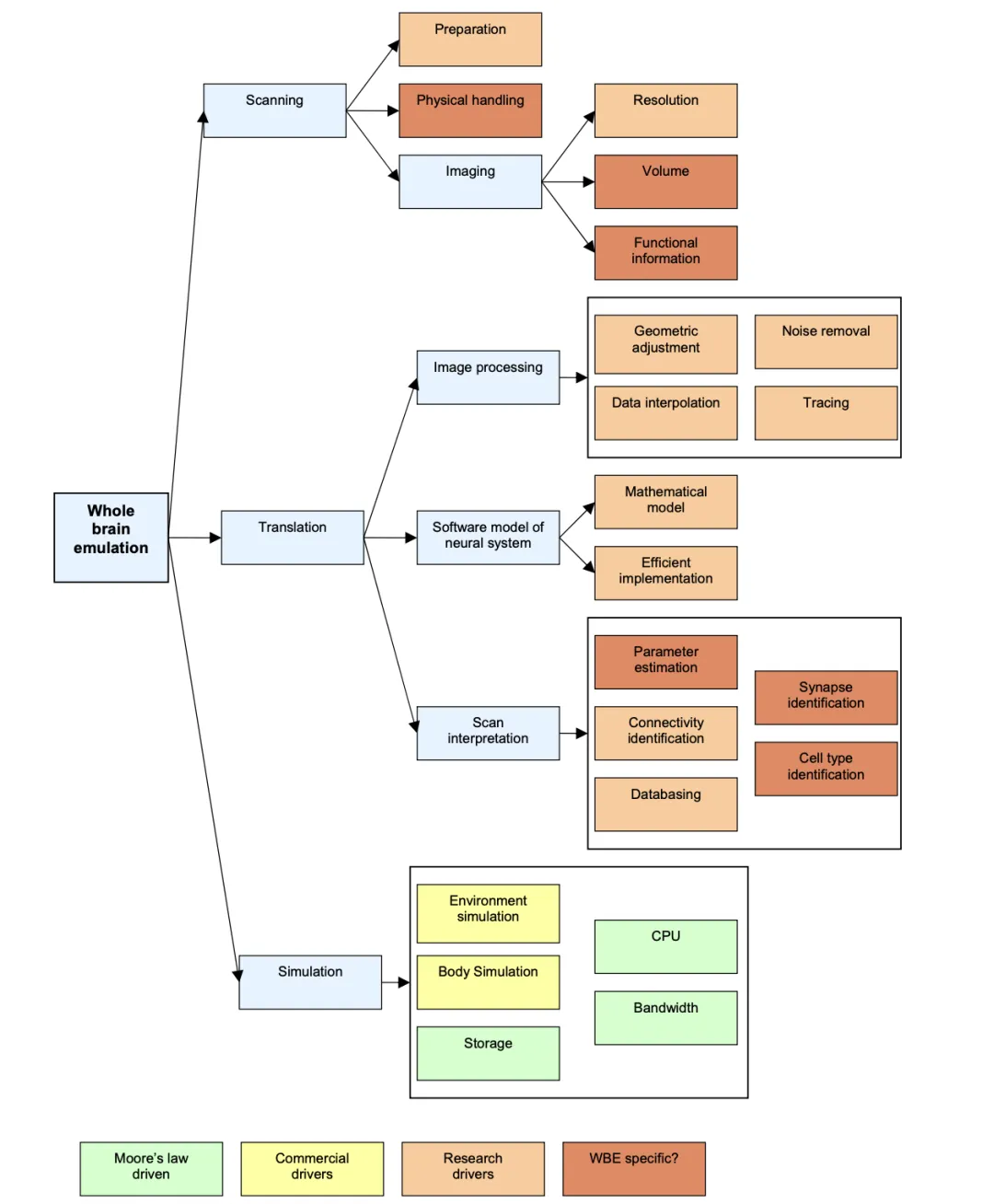▲Whole Brain Emulation:A Roadmap,推动全脑仿真(WBE)关键技术发展的技术驱动力
