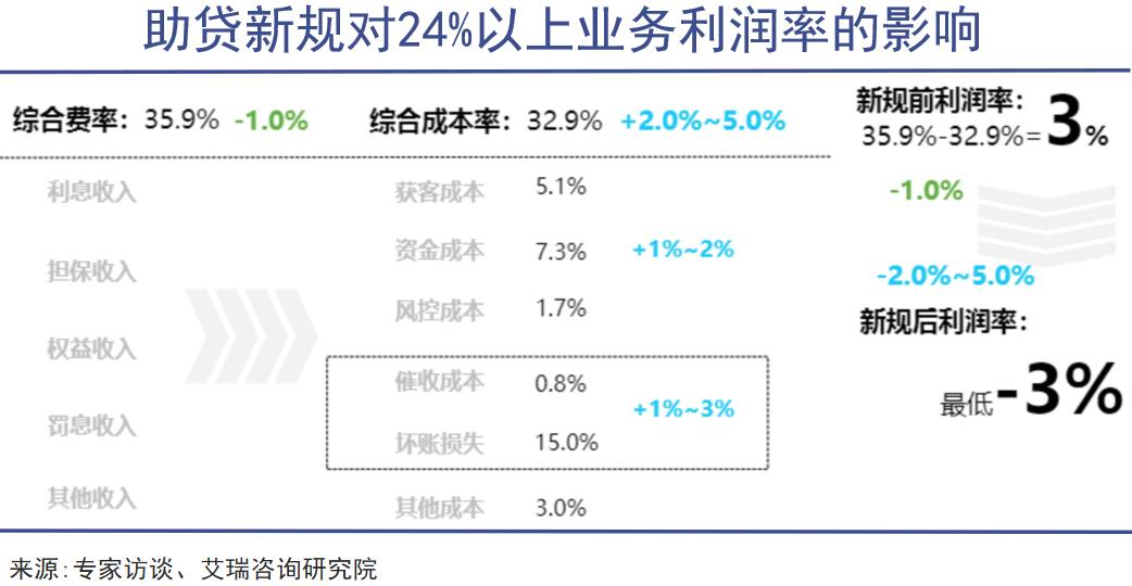 头部平台大多选择主动调整以满足合规要求,将新增贷款中利率高于24%的比例压降至10%左右,只不过这种主动剥离部分高风险老客户的行为很容易带来营收和利润的下滑。