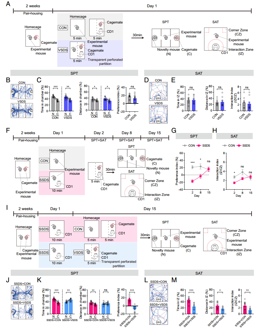 研究首先采用单社交挫败应激(SSDS)和替代性社交挫败应激(VSDS)构建小鼠模型: