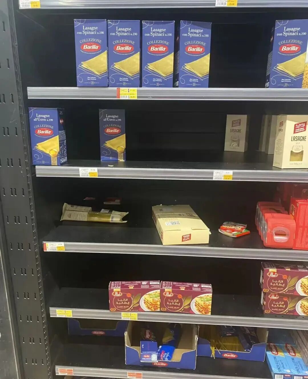 市场的恐慌情绪已开始蔓延。一名常居迪拜的华人发现,3月1日,连锁超市Lulu的意面、罐装食品、面粉等货架已接近买空状态,“所以我赶紧囤了一袋10kg的面粉,慢慢烙饼吃”。