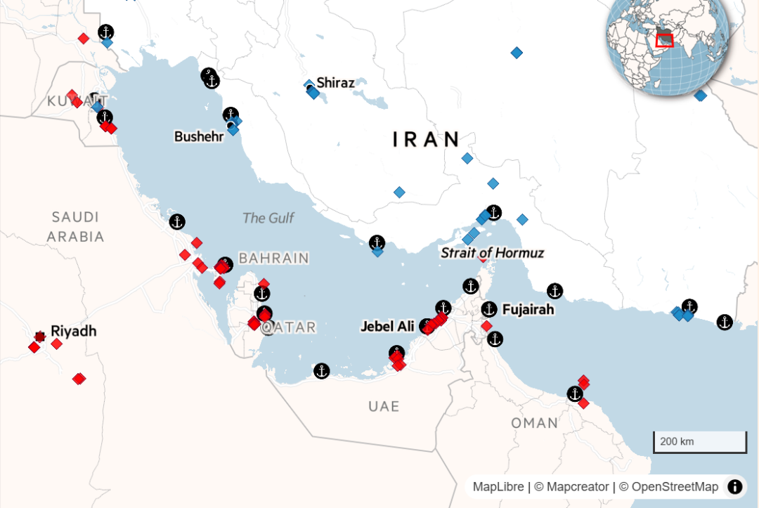 其他海湾国家也难以独善其身。正全力吸引外资推进经济多元化的沙特,其最大石油炼油厂与利雅得的美国大使馆遭伊朗无人机袭击;全球主要液化天然气出口国的邻国卡塔尔,因能源设施遇袭全面暂停液化天然气生产;而作为全球大宗商品运输核心咽喉的霍尔木兹海峡,航运也已陷入停滞。