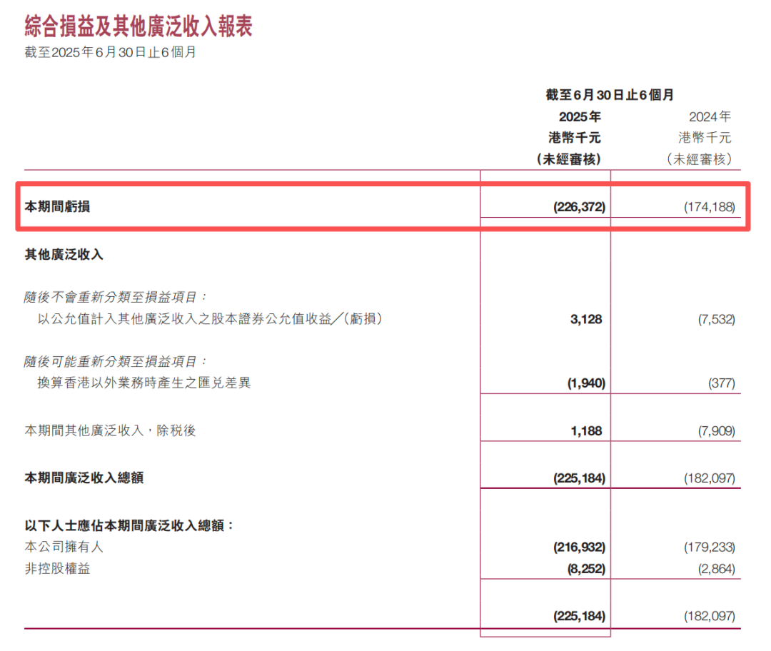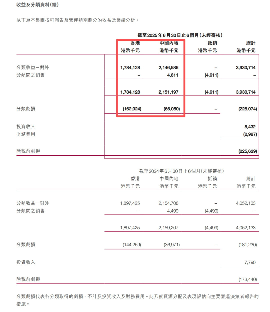 永旺的亏损不是突然发生,而是持续累积。2018年,亏损第一次出现,当年亏损5980万港元。此后七年,这个数字持续扩大,截止到2024年累计亏损突破7亿,2025年中期再扩大78.65%。