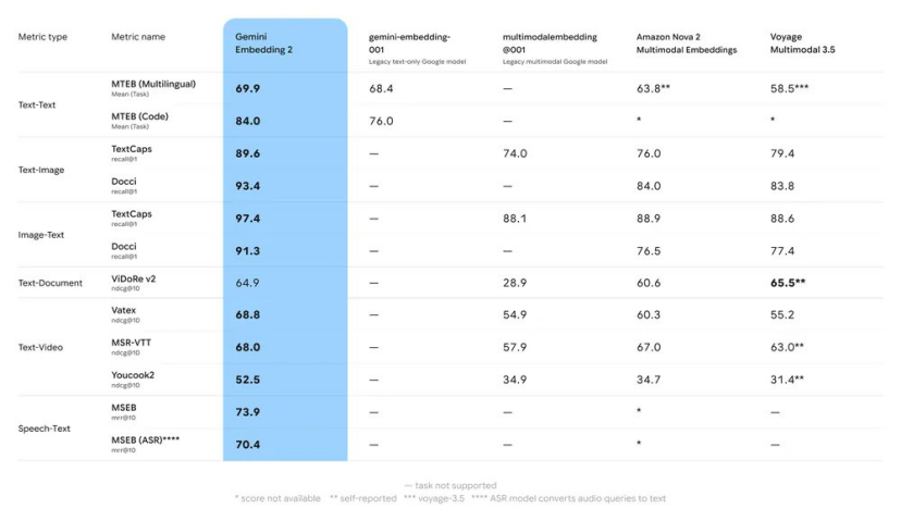 在基准测试中,它的多语言检索、代码检索和图文检索得分全面超越了Amazon Nova 2和Voyage 3.5。