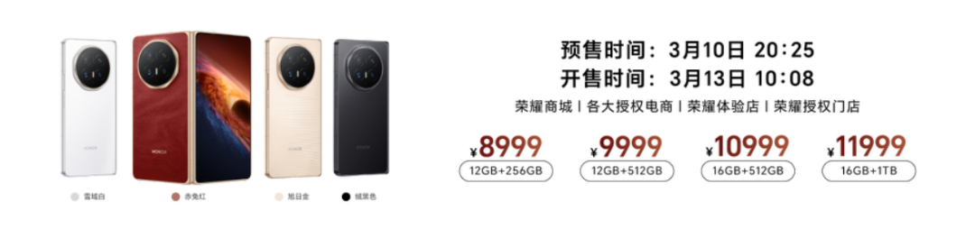 2026年3月1日和10日,荣耀先后两次举办发布会,发布折叠屏旗舰荣耀Magic V6,搭载自研至臻黑钻屏、2800MPa荣耀盾构钢铰链、6850mAh电池,起售价8999元。荣耀CEO李健表示,Magic V6拥有全维度“折叠大满贯”实力,堪称“折叠之王”。