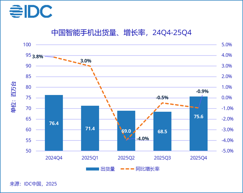 2026年2月,TrendForce发布的调研数据显示,基准预测下,预计2026年全球智能手机产量为11.35亿台,同比下跌10%;悲观预测下,产量可能降至10.61亿台,同比下跌15%。