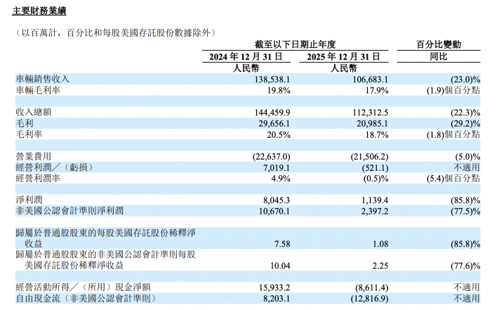 数据显示,理想汽车在 2025 年的净利润为 11 亿元;在非美国公认会计准则下,理想汽车的净利润为 24 亿元。在盈利规模大幅度收缩的情况下,理想汽车实现了连续三个年度的盈利。