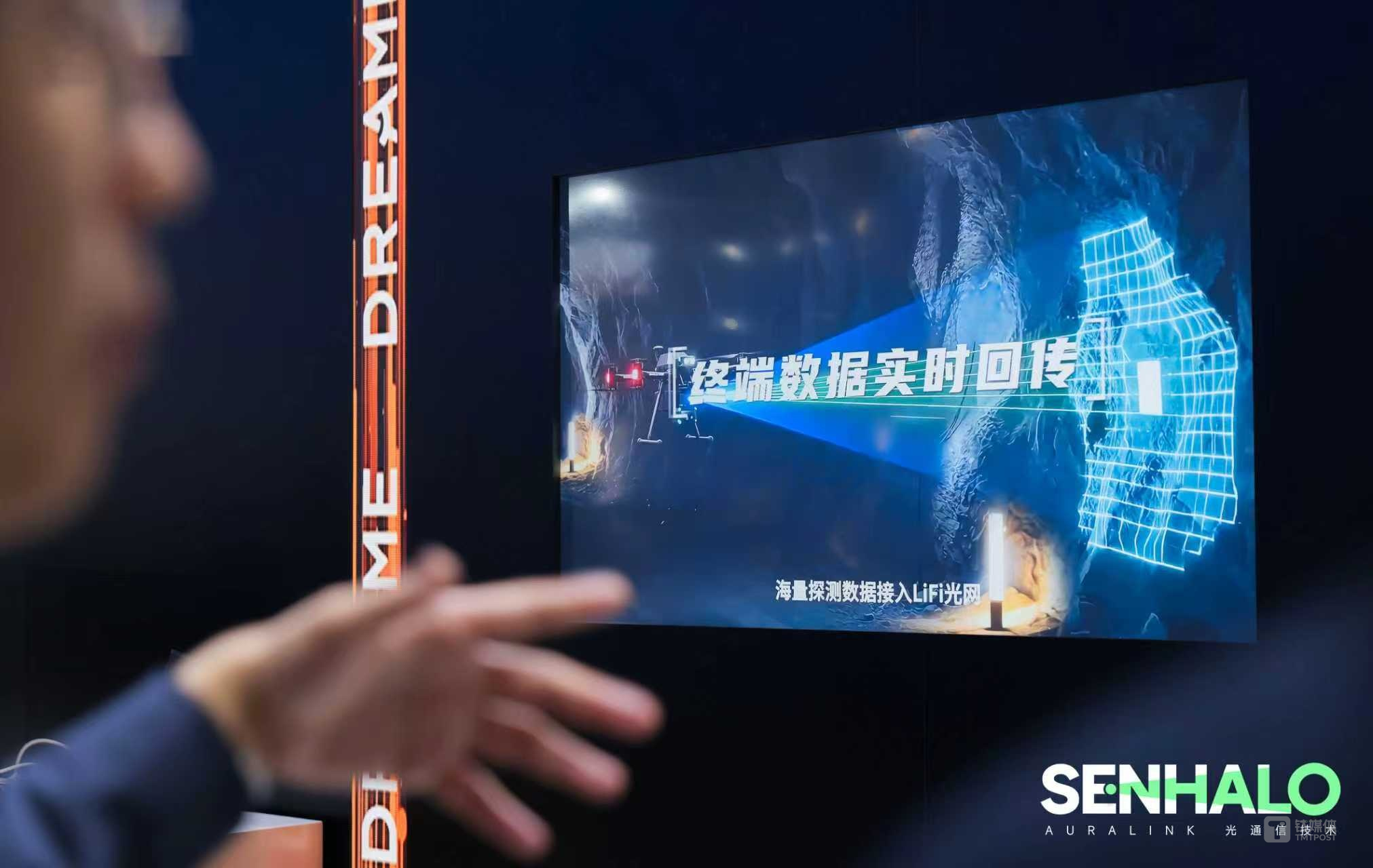 以传统的矿业勘探与深井采矿为例,深部矿井地形复杂、巷道曲折,铺设传统光纤极易损坏且成本高昂。地下无网,再聪明的AI机器狗也如同“盲人摸象”,Senhalo负责人告诉钛媒体,AuraLink光通信技术的入局,完美攻克了这一科技瓶颈:无需额外布线,直接复用矿井中必然存在的照明灯光或安全帽探照灯,即可构建起极低时延的光学通讯网。