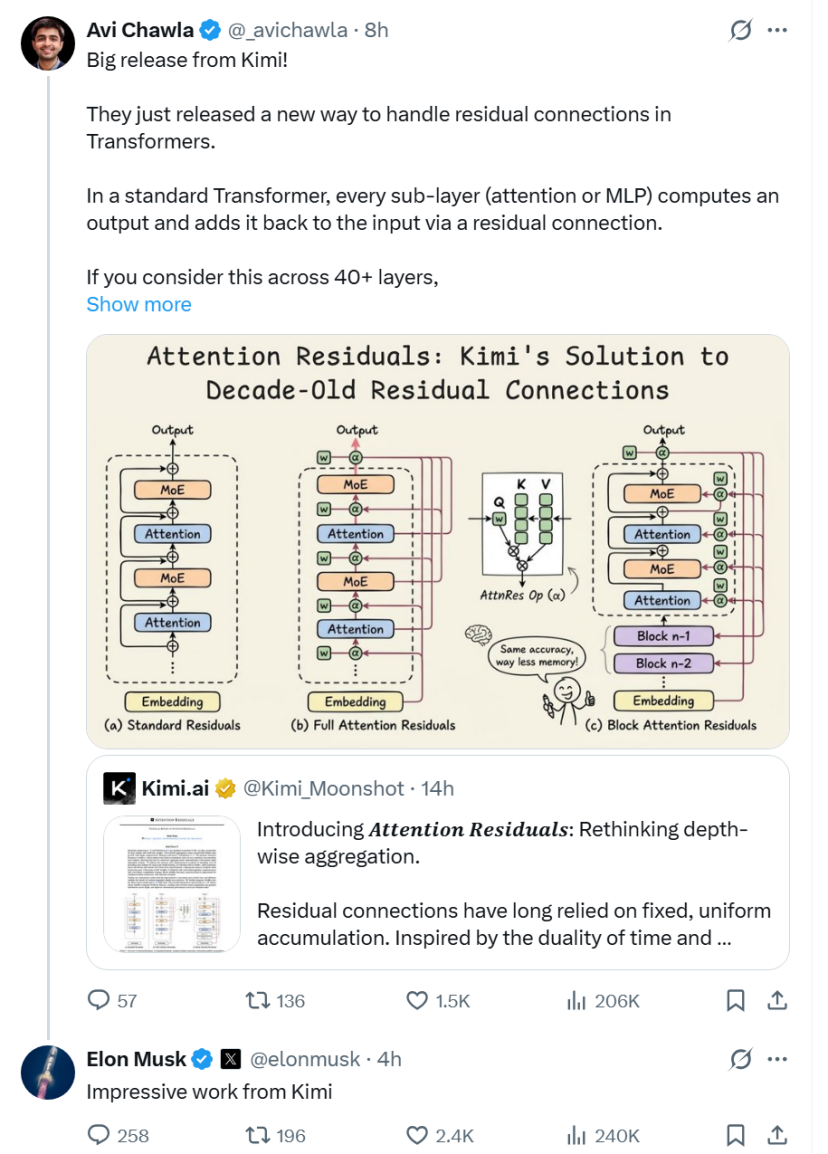 科技博主Avi Chawla在X上发了一条长帖,详细拆解了月之暗面Kimi团队刚刚发布的一篇技术报告。