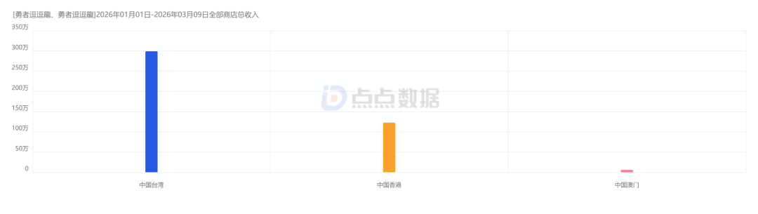 而在收入的地区分布上,《勇者逗逗龙》目前上线了港澳台三个市场,其中台湾市场的收入贡献占比高达70.01%,而香港市场收入占比为28.69%,澳门市场则相对占比较小。