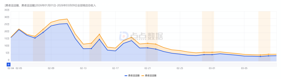 根据点点数据,《勇者逗逗龙》在2月初上线港澳台市场后初期收入成绩十分优异,首周收入便达到184万美元。此后缓慢下滑,目前稳定在单日收入约5万美元的水平。