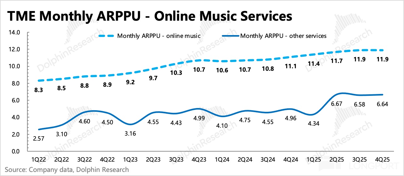 四季度其他音乐服务继续超预期,增速 41%,虽有放缓但仍属于高增长区间,目前已经占到了总营收的 30%。
