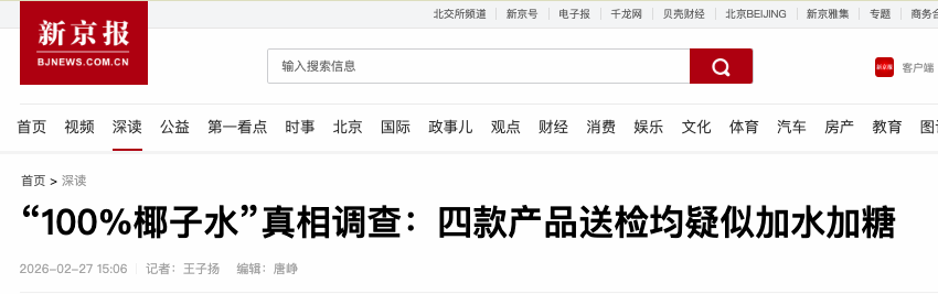 消费者的情绪迅速被点燃,并不偶然。围绕椰子水的质疑,其实早已存在,只是长期停留在“怀疑”,缺乏可以落地的证据支撑。