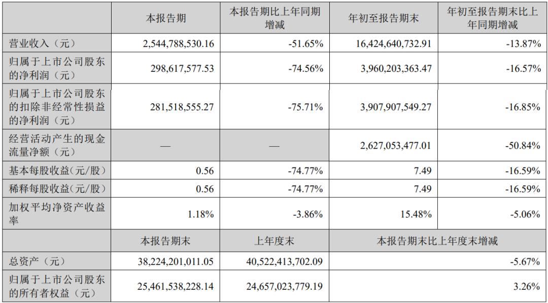 尽管身为徽酒老大哥,古井贡酒并未走出独立行情。2025年前三季度,公司营收164.25亿元,同比下降13.87%;归母净利润39.60亿元,同比下降16.57%。