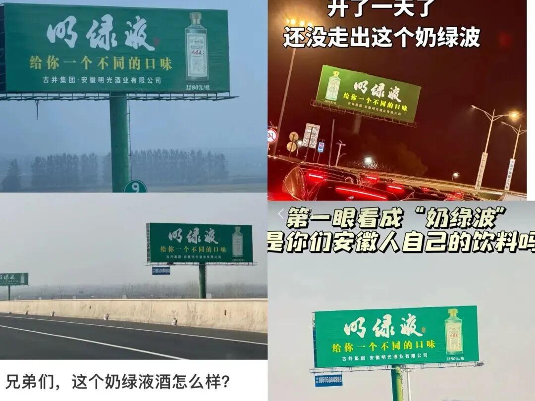 “以绿液”、“似绿波”、“好绿液”……如果不是春节高速那场史诗级的大堵车,恐怕没人会注意到,在安徽的高速公路上,伫立着这样一块让无数司机挠头的广告牌。