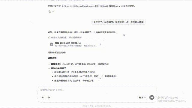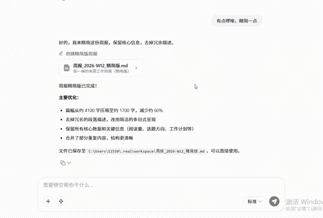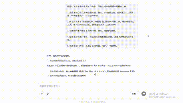 我们在实测中深有体会。我让悟空帮我写了一篇周报: