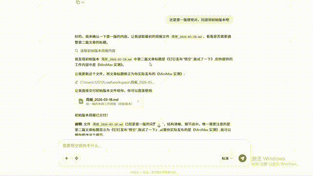 折腾两轮之后发现还是第一版好。放在以前,想找回第一版只能翻聊天记录。但悟空每步操作都自动存了快照,我说“回退到初始版本”,一秒就回去了,还能让它对比两版到底改了哪——终于敢放心让AI动手改东西了。每操作一步,系统自动保存快照,就像游戏里的自动存档。这是底层逻辑的差异。