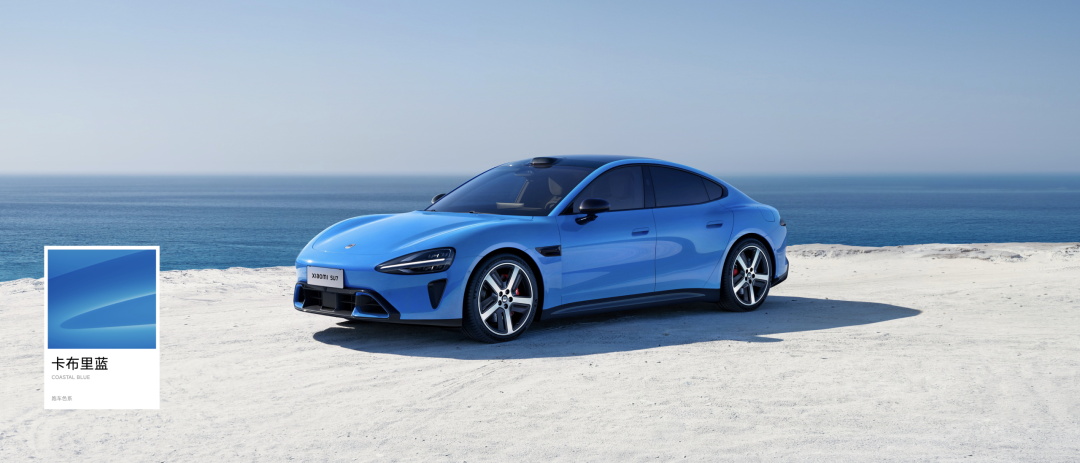 新一代SU7的外形与上一代车型类似,5米长、2米宽、3米轴距,是标准的C级豪华轿车,还有水滴大灯与光环尾灯等经典家族设计语言。本次新SU7首发三款新颜色,分别是卡布里蓝、赤霞红和靛石绿。