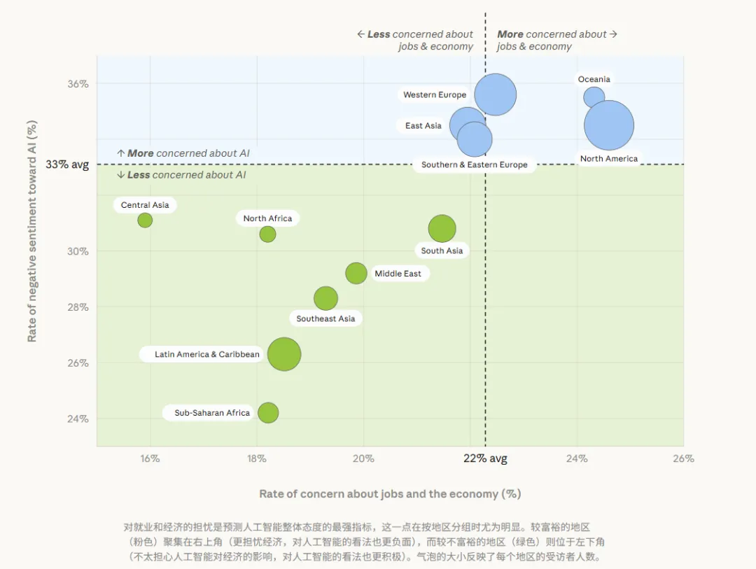 - 南美、非洲、亚洲大部分地区对AI更乐观