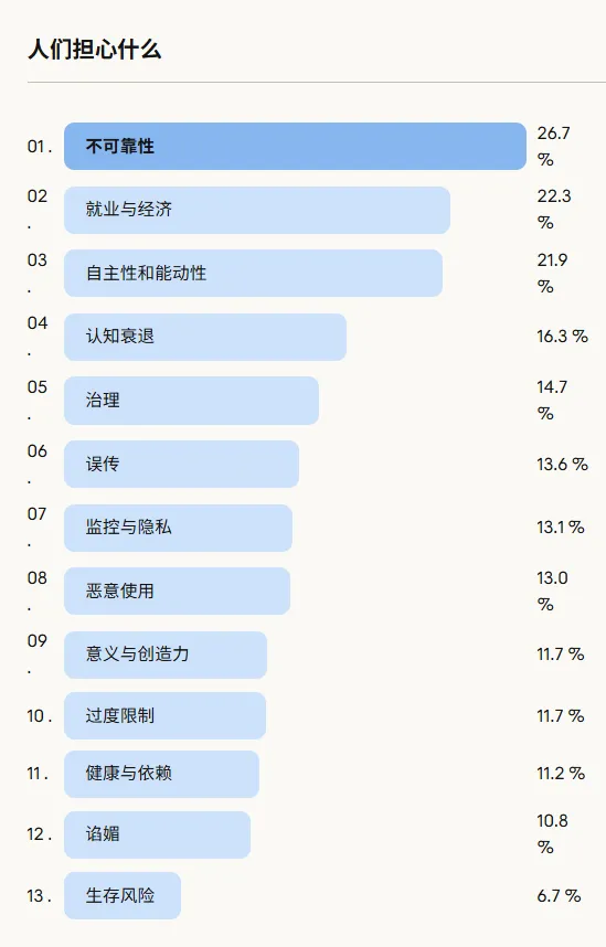 这种分化背后是一个残酷现实:对AI的态度,取决于你现有生活的厚度。当你还在为生存挣扎,AI是救命绳;当你已经拥有很多,AI是便利贴——但你也更害怕失去"人之所以为人"的东西。