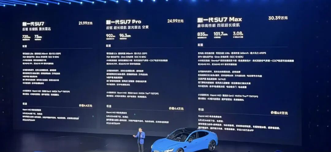 That depends on how it stacks up against competitors. At the launch event, Lei Jun compared the new SU7 with several rivals (the Model 3 Performance, Luxeed S7 Max, and a high-spec Zeekr 001). On paper, the SU7 Pro’s range, plus the dual-chamber air suspension + CDC that come standard on the Pro/Max, do create an “all-rounder” advantage at the same price point. Especially against the Model 3’s vision-only approach, the SU7 is trying to compete through differentiated hardware by piling on components.