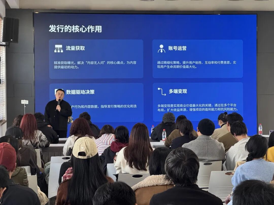 发行是内容商业价值的转换器,精细化运营决定流量变现效率。冉旭将发行的核心作用总结为流量获取、账号运营、数据驱动决策、多端变现四大点,并直言“发行决定了内容的曝光度和最终的商业价值”。