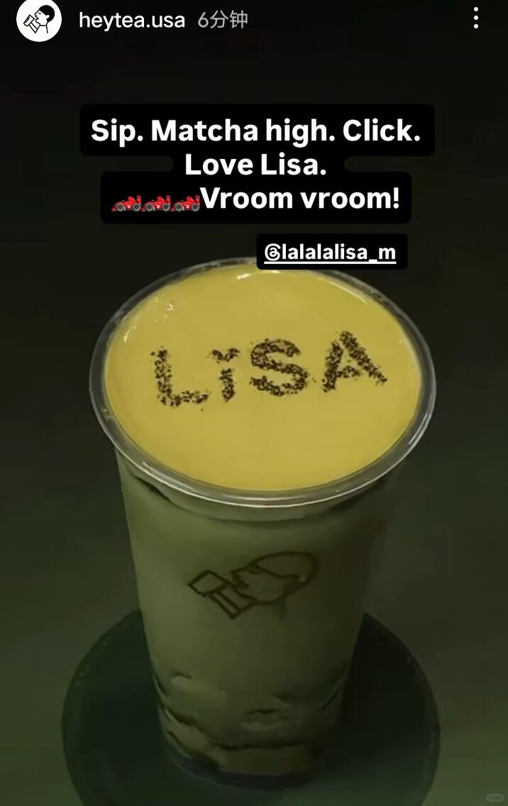 2025年7月,BLACKPINK成员Lisa在Instagram上传了一张自拍——她俯在方向盘上,而法拉利敞篷的座位旁,喜茶的三倍厚抹悄悄彰显着存在感。