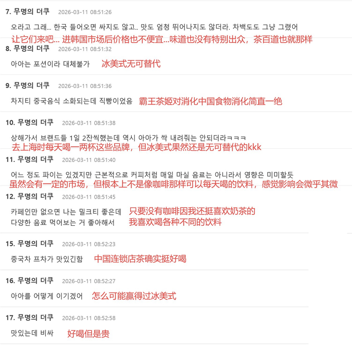 在韩国社交平台NAVER上,一条有关“霸王茶姬首尔开业、中国茶饮扎堆勇闯韩国”的贴文里,当地消费者似乎又有些怨声载道。