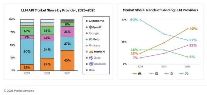 Menlo Ventures(一家硅谷风险投资公司,领投了Anthropic)数据显示,Anthropic、OpenAI、Google 三家已经占到88%的企业LLM API使用份额,说明客户最终会把预算集中给那些“更强、更稳、更适配场景”的头部玩家,而不是长期奖励一个单纯靠低价取胜的供应商。