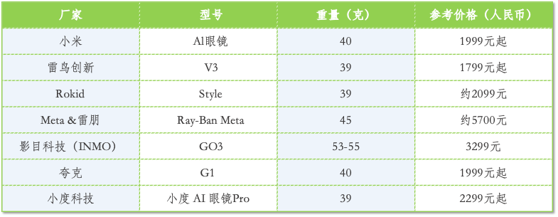 手机行业作为智能终端的传统霸主,也没有错过AI眼镜这个潜在的“下一代产品”。小米、OPPO等主流手机厂商纷纷布局,将AI眼镜视为延伸自身生态、抢占未来入口的重要布局。小米2025年首发的AI眼镜搭载1200万像素摄像头和小米澎湃OS系统,可实现第一人称视角的视频通话、直播;搭载超级小爱,支持智能问答、10种语言翻译、会议纪要、控制手机及智能家居、眼镜扫码支付等功能。
