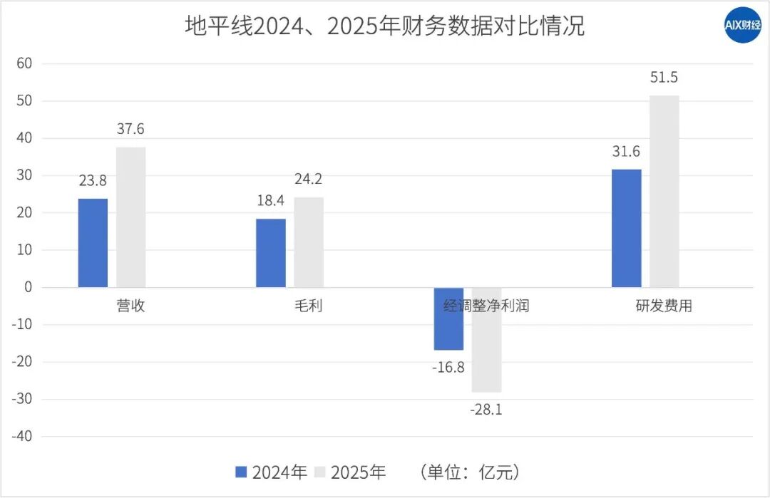 地平线的财报有一组对比强烈的数据:全年收入37.6亿元,同比增长57.7%;但年内亏损104.7亿元,即便剔出账面因素,调整后净亏损也达28.1亿元,同比扩大67.3%。