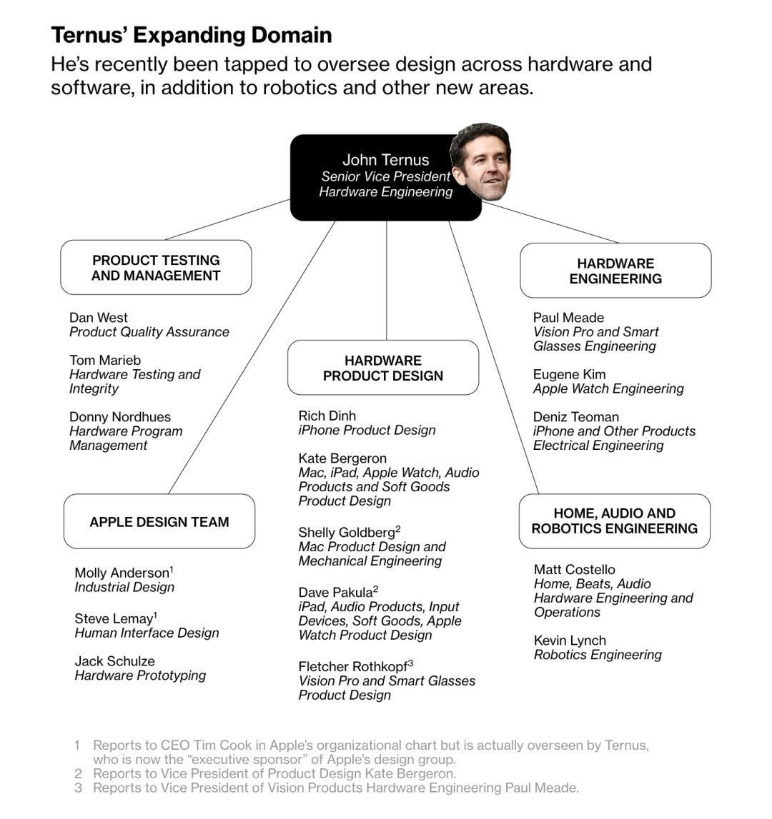 目前,苹果正致力于扩大约翰·特努斯的职权。据彭博社报道,特努斯负责硬件和软件设计团队的监管工作,成为了苹果引以为傲的设计团队与高层管理人员之间的关键联络人。彭博社记者马克·古尔曼认为,“特努斯已成为苹果史上最具影响力的人物之一。”