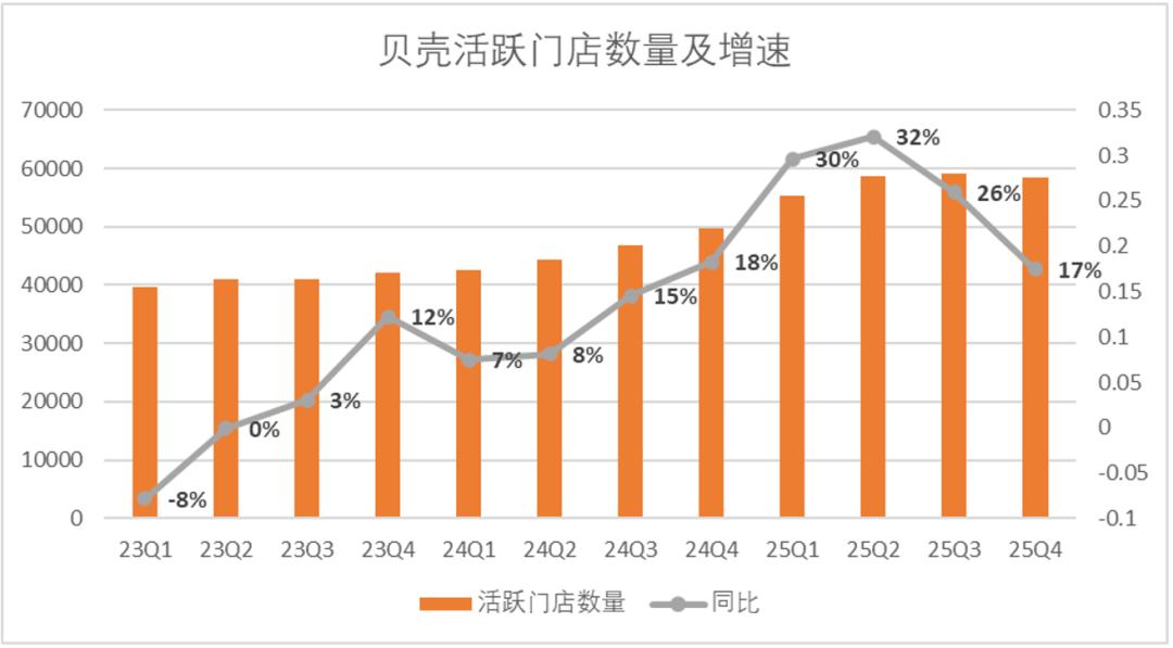行业的收缩,短期看是劣势,长期看未必。对于龙头公司而言,周期下行恰恰是清场的机会。中小玩家被迫出局,资源向头部集中,贝壳的市占率反而在提升。四季度MAU稳定在4300万以上,门店网络进一步加密,一旦周期企稳,这些积累都会转化为更强的议价能力和更快的反弹速度。