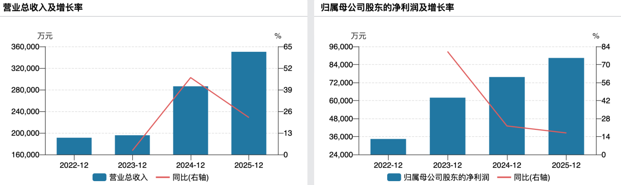 财务数据显示,2022—2025年,公司营业收入从19.11亿元增至35.03亿元,连破两个十亿级整数关口;归母净利润从3.44亿元攀升至8.84亿元,四年间盈利翻了2.57倍,年均复合增长率超26%。