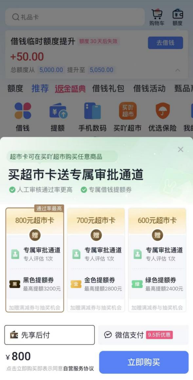 在借款时,被推荐先买超市卡
