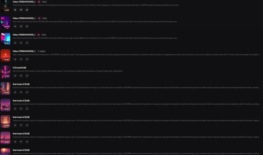 至于观众表示更绝的配乐,DIDI自嘲是个“连五线谱都不认识的五音不全者”,但他摸索出了一套独特的AI音乐工作流:不谈乐理,只谈感受。