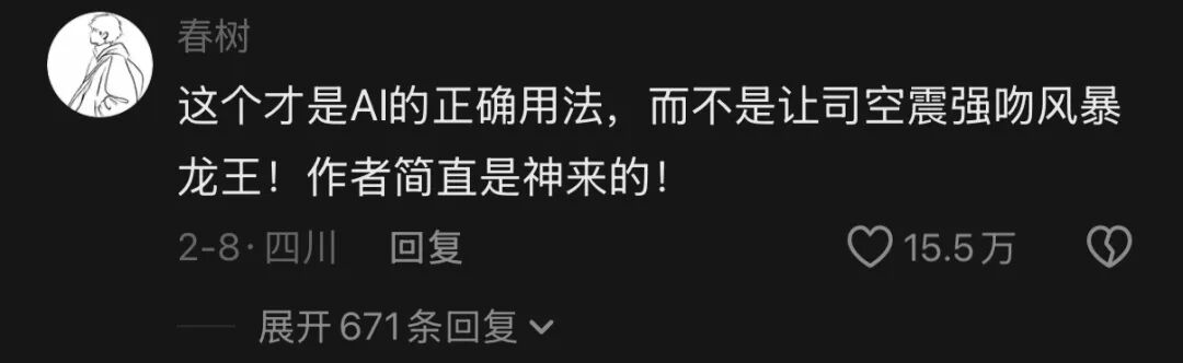 如果用罗小黑IP路线类比,现在的AI影视,可能仅仅是动画更了前10集的状态,不够成熟,也没有让观众建立信任感。