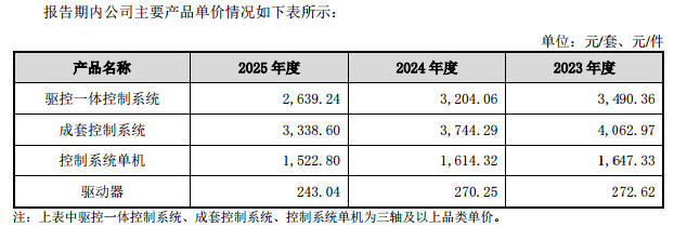 更为关键的是,新睿电子的主要产品为驱控一体控制系统、成套控制系统、控制系统单机、驱动器,其中报告期内驱控一体控制系统的销售单价分别为3490.36元/套、3204.06元/套、2639.24元/套;成套控制系统的销售单价分别为4062.97元/套、3744.29元/套、3338.6元/套;控制系统单机的销售单价1647.33元/件、1614.32元/件、1522.8元/件;驱动器的销售单价分别为272.62元/件、270.25元/件、243.04元/件。这也意味着,新睿电子所有主产品的销售单价均在持续下滑,特别是驱控一体控制系统三年间单价累计降幅达24.38%。