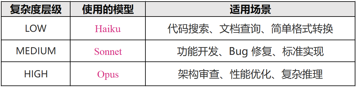 OMC 内置了一套模型路由策略,根据任务复杂度自动选择合适的模型: