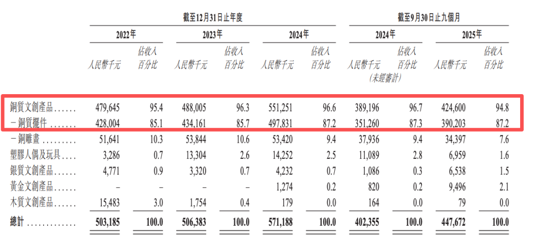 最新招股书显示,自研传统文化IP是铜师傅营收的主要来源,为其贡献了88.3%营收。但这条看似稳妥的道路,背后藏着难以忽视的隐忧。