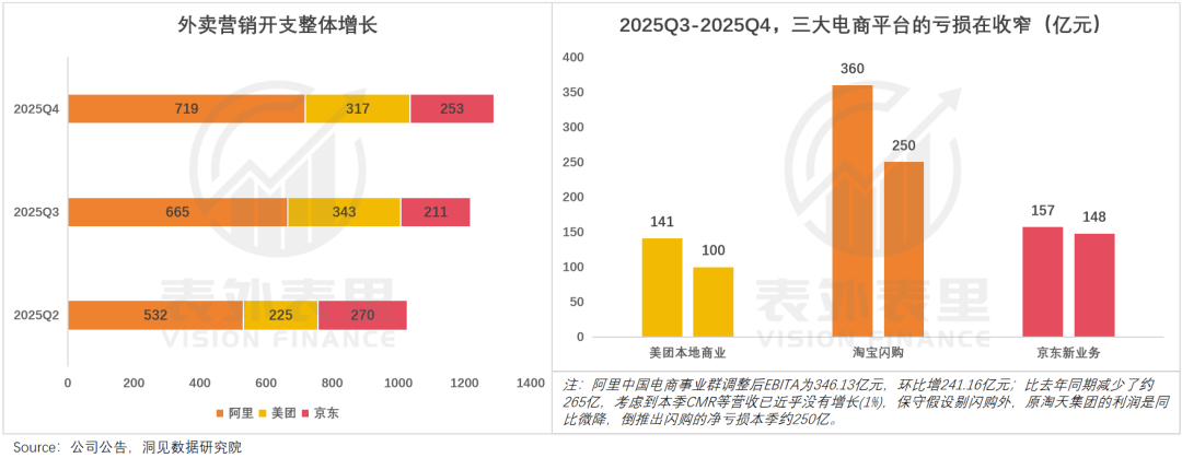 随着“外卖三剑客”财报陆续交出,美团终于可以松一口气:仅在2025年四季度,几家平台合计营销开支超1200亿,但默契地收窄了亏损,补贴加速退潮。