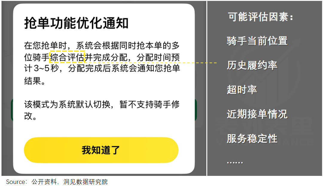 维护好骑手队伍就是一门管理的艺术。今年初,不少骑手发现美团上新了“分配抢单模式”——多人同抢一单时,不再“先到先得”,而是延迟几秒,再由系统决定把单给谁。