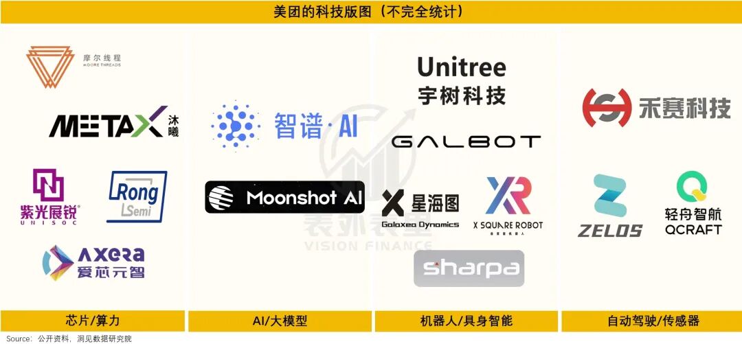 在投资版图上,美团也从上游GPU、AI芯片、大模型公司,中游具身智能,一路投到下游自动驾驶与传感器领域,几乎押注了AI进入物理世界的一张完整地图。