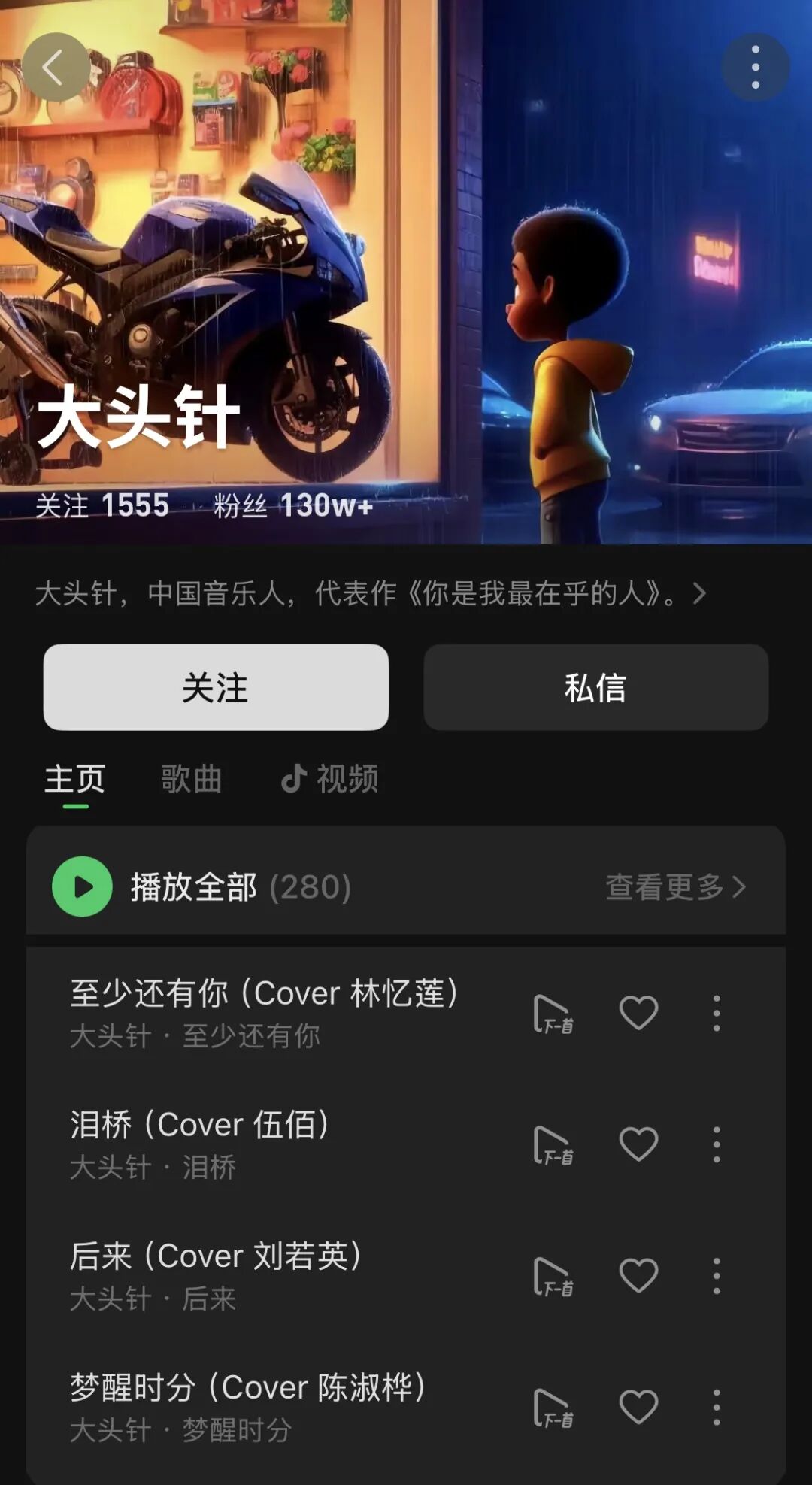 随之而来的是越来越多的创作者,开始加入成为AI歌手。2025年底,AI歌手“大头针”在抖音和汽水音乐上悄然走红。三个月吸粉超百万,全网播放量突破5亿次,1500多首翻唱作品席卷平台。