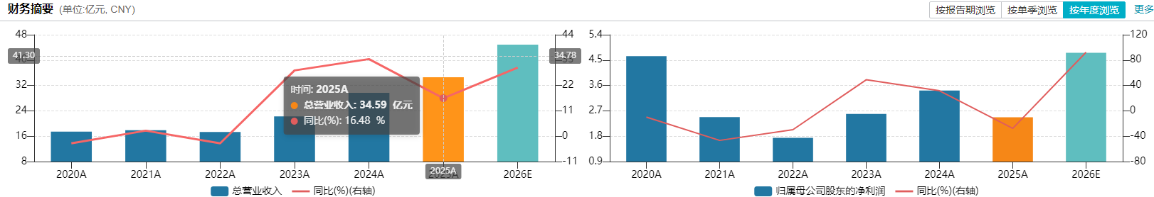 核心财务数据显示,公司营业收入增速维持在15%以上,延续了近年的扩张节奏;但归母净利润从2024年的3.42亿元骤降至2.47亿元,同比下滑近28%,扣非净利润同比下滑29.2%,盈利能力持续走弱。