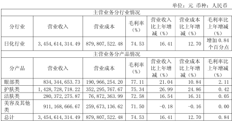 丸美的增长高度依赖眼部护理大单品拉动。2025年眼部类产品营收8.34亿元,同比增长21.04%,护肤类产品营收14.29亿元,同比增长26.99%,两大品类毛利率均超75%,撑起公司核心营收与利润。